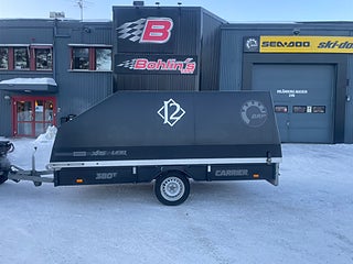 Utforska våra släpvagnar och skotersläp med kåpa – det perfekta sättet att säkert transportera din utrustning i alla väderförhållanden. Med extra skydd mot väder och vind håller de din utrustning torr och skyddad, vilket gör dem till en bekväm och pålitlig lösning för dina transportbehov.