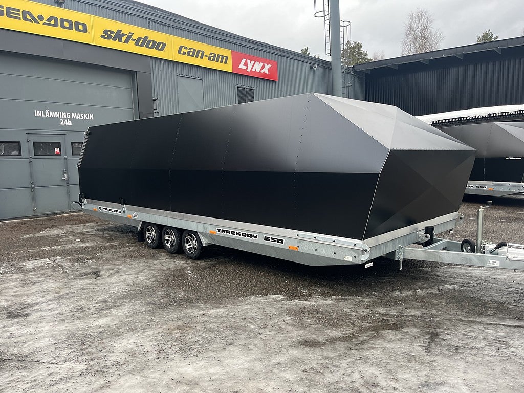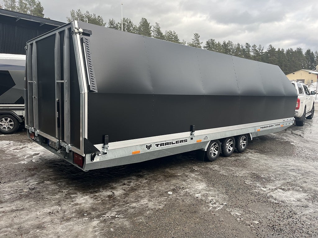 TrackDay vagnen är alltid rejält standardutrustad. Hel Bakgavel med lyfthjälp, Hydraulisk Tipp. 10” aluminiumfälgar med sommardäck, 1600 mm hög kåpa med invändiga lastbågar, lastlåsskenor. Kompositgolv samt LED-belysning på vagnen.