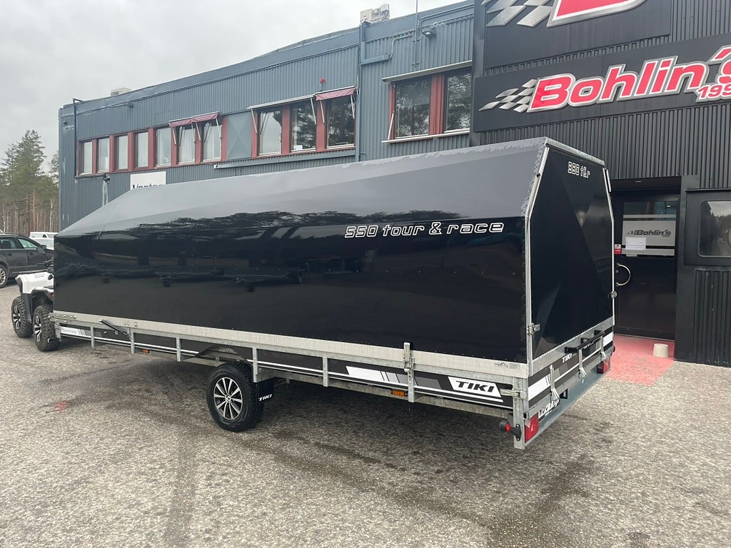 Begagnad: Tiki CP550-LB tour & race i mycket fint skick. Denna vagn är perfekt om du vill kunna köra 3 st snöskotrar. Utrustad med Invändig belysning Sommar/vinterdäck på alufälg och Ramp med lucka.
